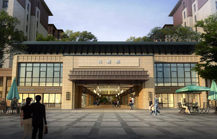 本方案受地形和日照的限制,整體布局為橫向兩排建筑,源于對中國古典院落的空間追求,形成中軸對稱,有收有放的空間院落體驗,北側(cè)130m的開敞廣場,既為城市提供了足夠的居民活動場所,又為項目本身營造一個開敞的前院空間。項目采用混合式空間布局,形成一道錯落有致的城市天際線。