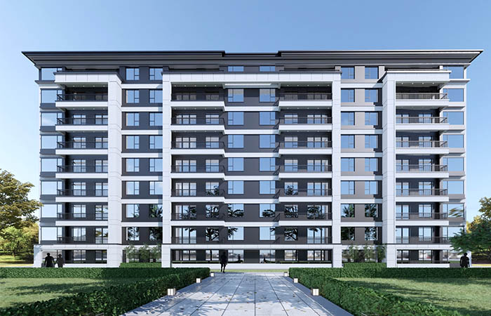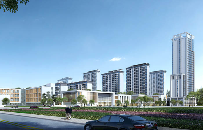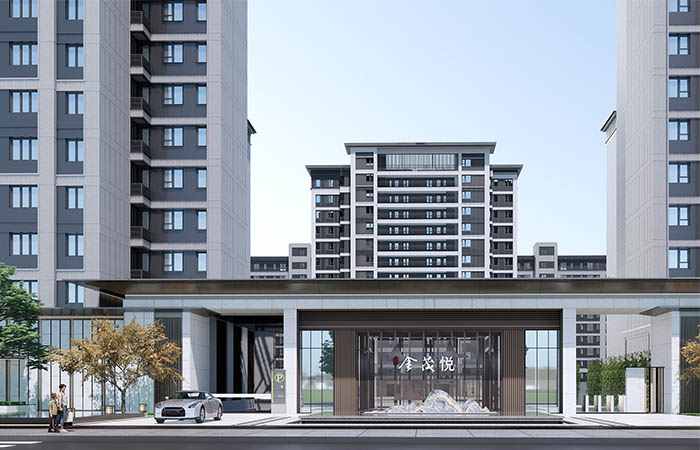 建筑風格為新中式與現(xiàn)代建筑混合,既與周邊建筑風格相協(xié)調(diào),又體現(xiàn)獨創(chuàng)和完美意境。建筑顏色主要由灰色和米色構(gòu)成,立面設(shè)計,優(yōu)雅大氣,富有格調(diào)。