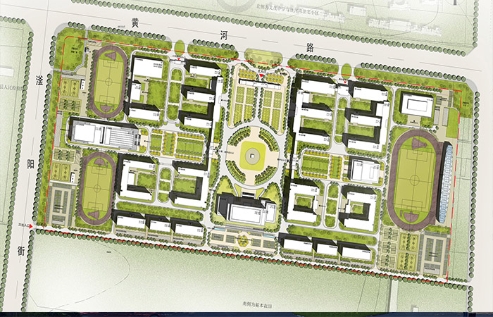 項目景觀延續(xù)規(guī)劃主軸,場地中央設置核心景觀區(qū),各教學及生活組團分別設置組團景觀,根據(jù)不同的空間序列,營造禮儀景觀軸,打造多個景觀節(jié)點,形成深層次,多維度的景觀體系。