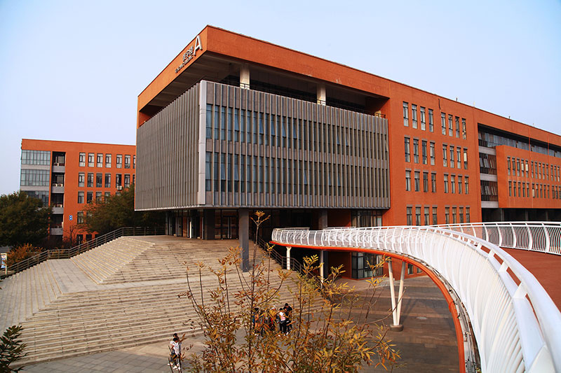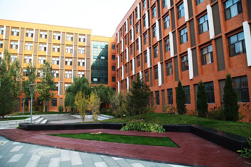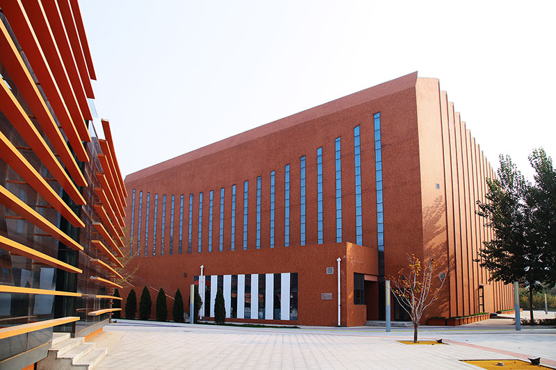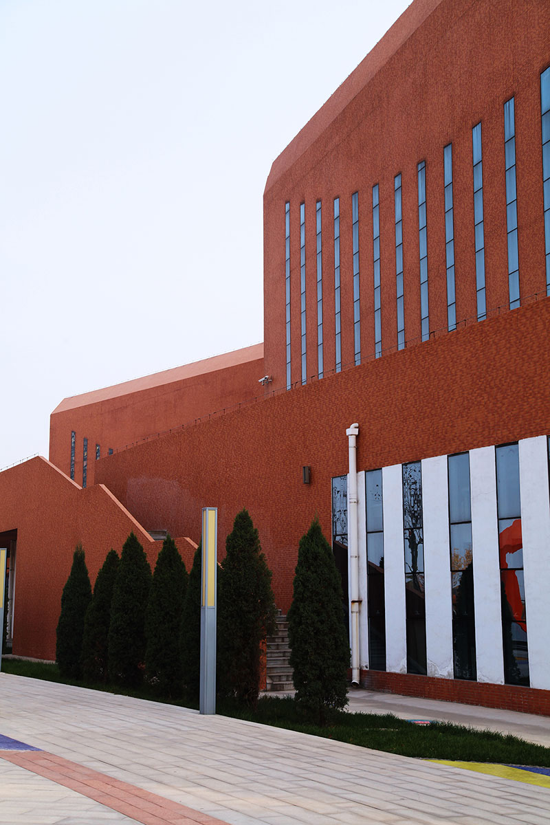 立面采用校園常用的紅磚手法,搭配鋼架及藍(lán)色玻璃幕,將傳統(tǒng)與現(xiàn)代相互結(jié)合,在給學(xué)生帶來濃厚傳統(tǒng)底蘊(yùn)的同時(shí)又不失現(xiàn)代創(chuàng)新的文化氣息。