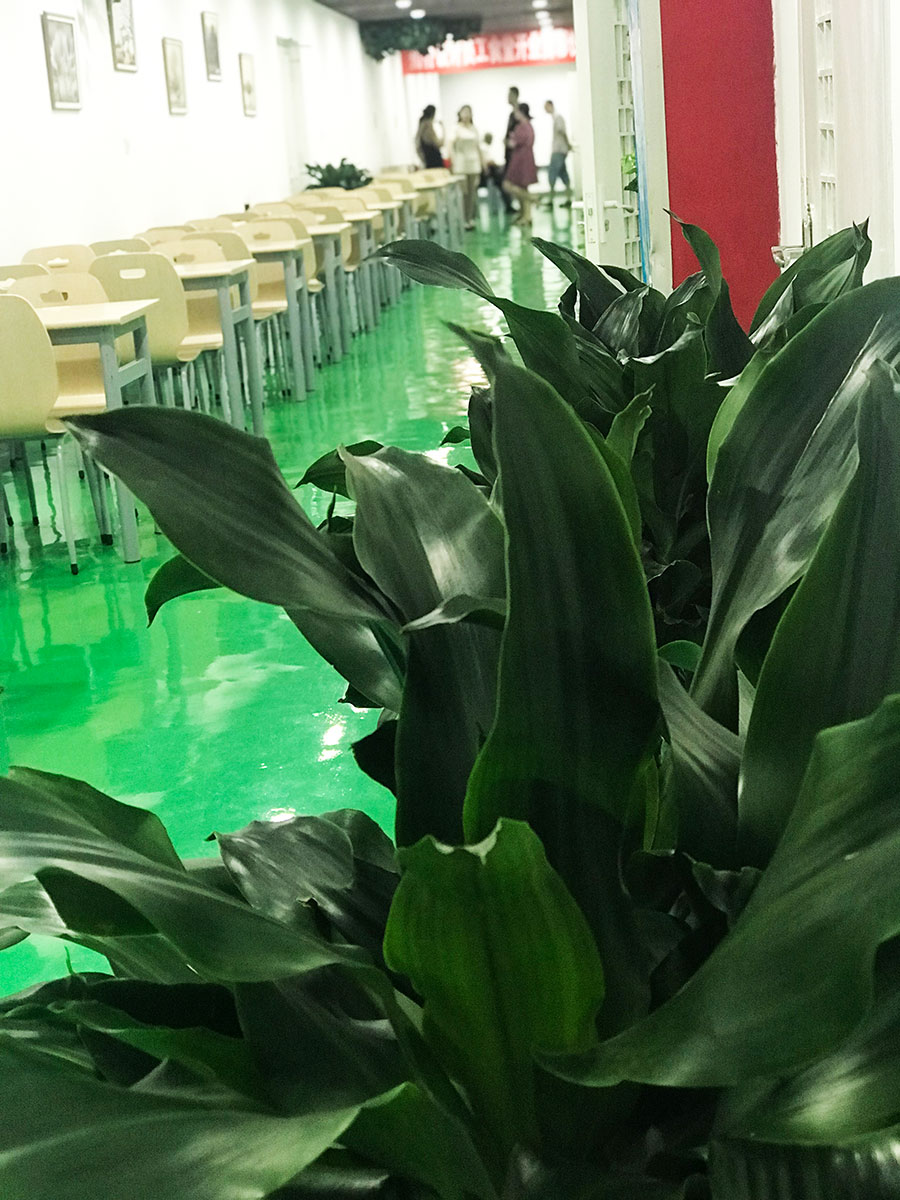 如蔭的綠植,溫馨的燈光,嶄新的桌椅整齊排,小清新的壁畫養(yǎng)人眼消過毒的餐具發(fā)著亮光。