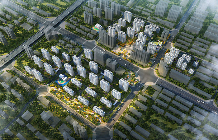 項(xiàng)目依托上位規(guī)劃,將整個(gè)用地劃分為北、東、南三個(gè)片區(qū),打造三區(qū)、一軸、一中心的規(guī)劃布局。依托城角街打造生活配套及人文景觀軸線,結(jié)合城角莊歷史設(shè)置文化景墻等多重景觀節(jié)點(diǎn)。并在城角街西側(cè)集中設(shè)置鄰里中心,將新城與老街相融合,保留城角印象、煙火氣息,打造包容、多元的城市空間。