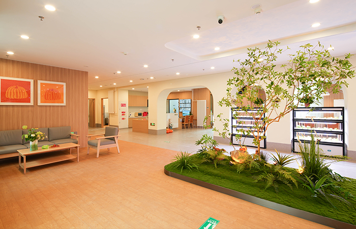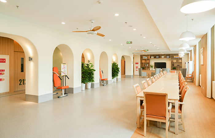 在適老化空間,我們結(jié)合老年人行為、心理等特性,認(rèn)為在康氧環(huán)境中設(shè)置無障礙設(shè)施尤為重要,不僅僅體現(xiàn)于無障礙通道或電梯,還包括視線監(jiān)視與近便的服務(wù)動線設(shè)計。