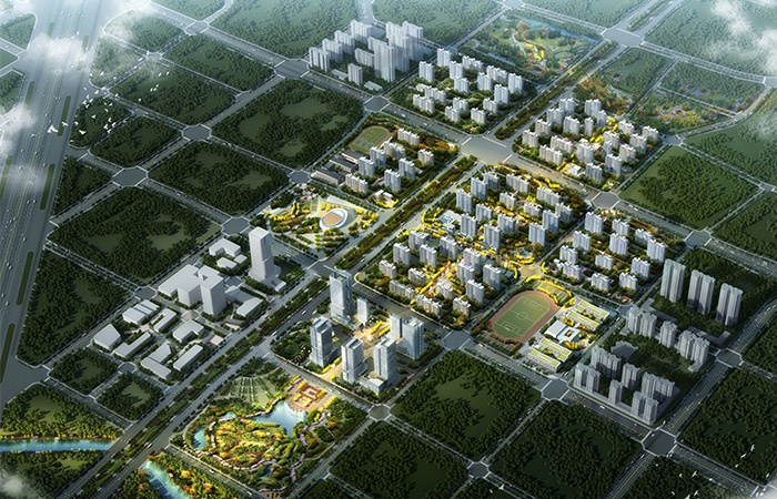 商業(yè)綜合體與鄰里中心,建筑體型與景觀空間互融,形體錯(cuò)動(dòng)豐富多變,金屬線條硬朗細(xì)膩,樹立現(xiàn)代門戶新標(biāo)。