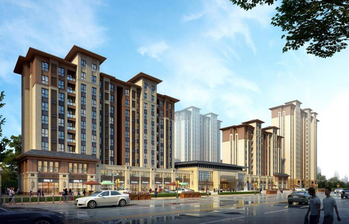 本方案受地形和日照的限制,整體布局為橫向兩排建筑,源于對中國古典院落的空間追求,形成中軸對稱,有收有放的空間院落體驗,北側(cè)130m的開敞廣場,既為城市提供了足夠的居民活動場所,又為項目本身營造一個開敞的前院空間。項目采用混合式空間布局,形成一道錯落有致的城市天際線。