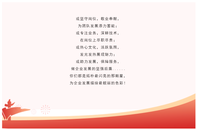 今天,我們表彰優(yōu)秀,鼓勵(lì)先進(jìn),為每一個(gè)努力追夢(mèng)成長(zhǎng)進(jìn)步的拓樸戰(zhàn)友點(diǎn)贊加冕!