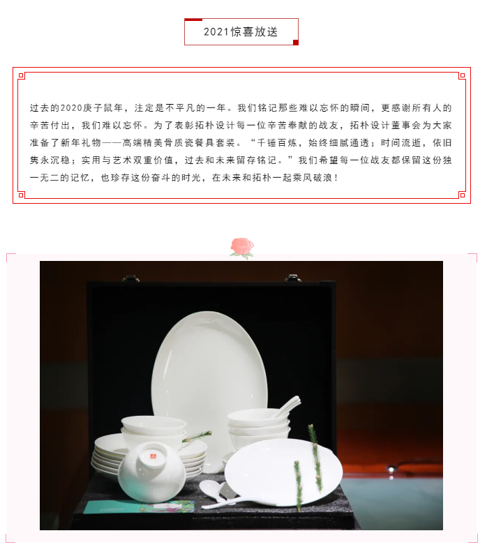 我司特為拓樸戰(zhàn)友定制了新春禮品——高端精美骨質(zhì)瓷餐具套裝。