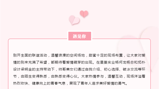 以“心動(dòng)大者 緣定今生”為主題的青年聯(lián)誼交友會(huì)。遇見你預(yù)見愛,開啟你的心動(dòng)模式。