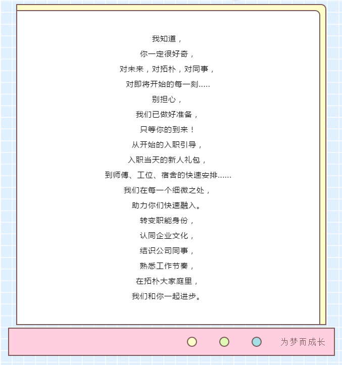 嗨,新朋友,你別不安,這里是你的新起點(diǎn)。成長加速度的美好未來,即刻開啟。