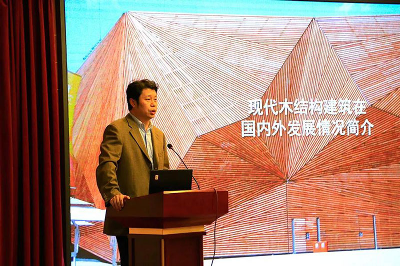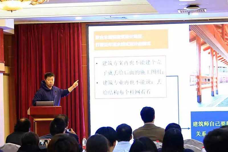 加拿大木業(yè)協(xié)會市場開發(fā)總監(jiān)毛林海先生向大家介紹了現(xiàn)代木結(jié)構(gòu)建筑在國內(nèi)外發(fā)展情況,毛先生以中國遼代經(jīng)典木結(jié)構(gòu)建筑——應(yīng)縣木塔開篇,對中國傳統(tǒng)的木結(jié)構(gòu)建筑與現(xiàn)代發(fā)達(dá)國家的新型木結(jié)構(gòu)建筑進(jìn)行了對比,并對國內(nèi)外木結(jié)構(gòu)水平進(jìn)行了分析。通過詳細(xì)介紹木結(jié)構(gòu)的發(fā)展和現(xiàn)代木結(jié)構(gòu)典型建筑,讓廣大設(shè)計師對木結(jié)構(gòu)建筑有了深入的了解。