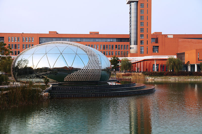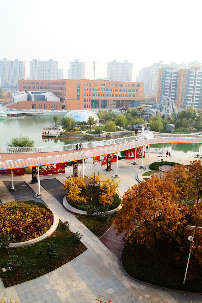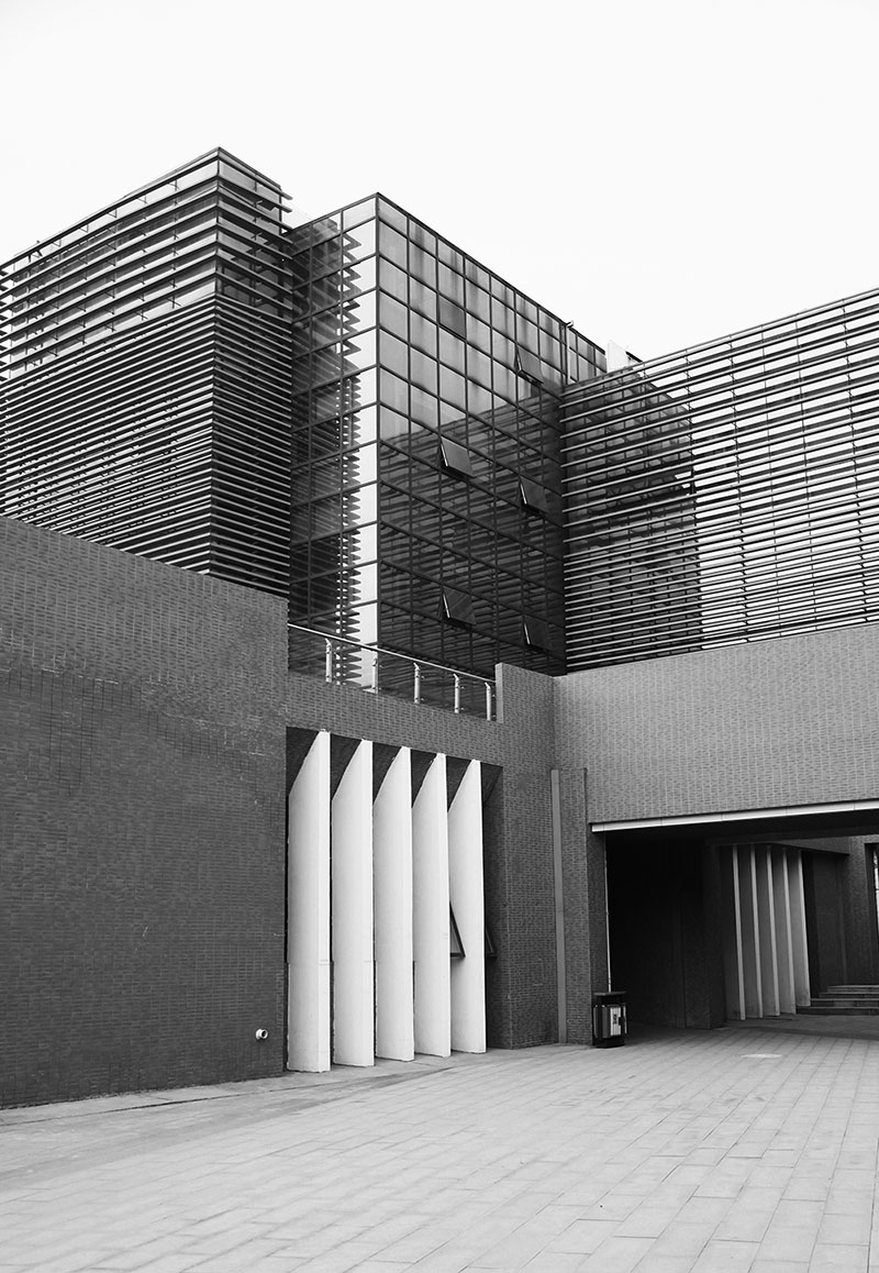 從整體規(guī)劃布局上看,校園內(nèi)各樓排布張弛有度,建筑與景觀相互結(jié)合,中央大湖與景觀廊架搭配蜿蜒蜷曲的步道,平靜中孕育詩(shī)意,給一所沉穩(wěn)的文化建筑帶來靈動(dòng)的韻律之美。
