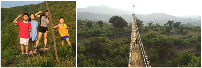 夕陽(yáng)西下,全員到達(dá)村西廣場(chǎng),休整之暇,孩子開心的跑到邊上撿石子玩耍。