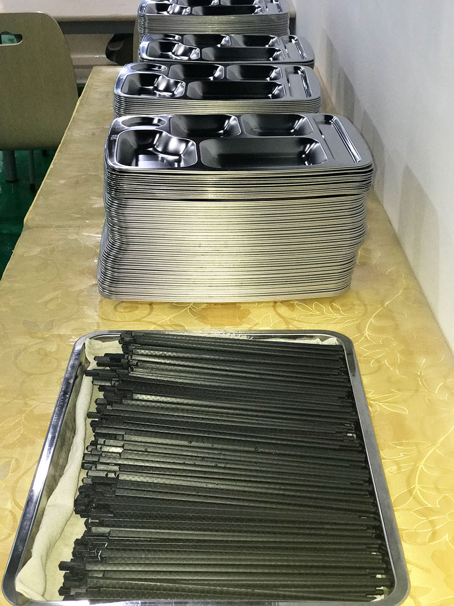 消過毒的餐具發(fā)著亮光