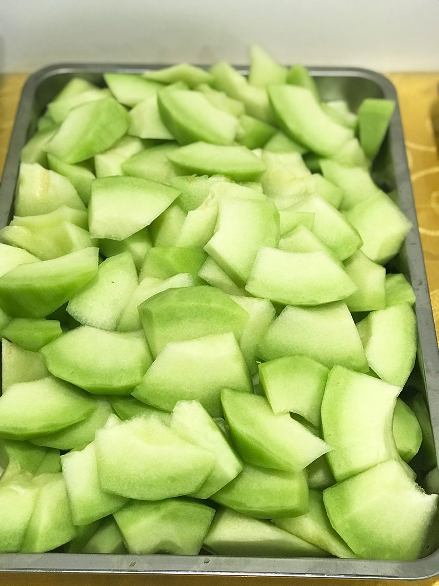 水果去皮又去籽,主食一上場,滿廊都是飯香---四菜一湯