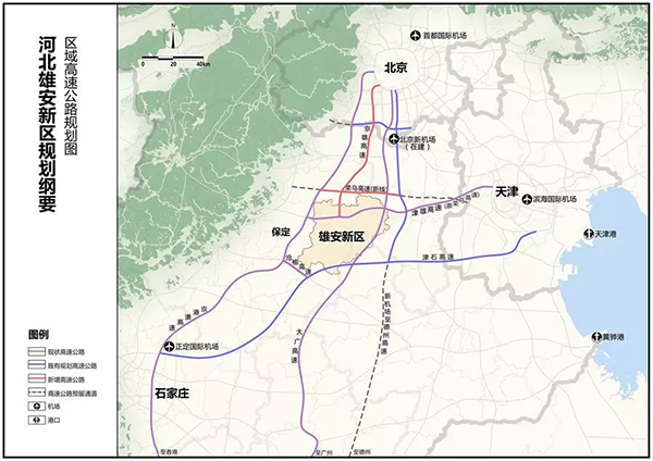 完善高速公路網(wǎng)。構(gòu)建“四縱三橫”區(qū)域高速公路網(wǎng)!八目v”為京港澳高速、大廣高速、京雄高速(含新機場北線高速支線)、新機場至德州高速,“三橫”為榮烏高速新線、津雄高速、津石高速,實現(xiàn)新區(qū)60分鐘到北京、天津,90分鐘到石家莊。加強新區(qū)與天津港(9.140, -0.19, -2.04%)、黃驊港交通聯(lián)系,暢通新區(qū)出海通道。